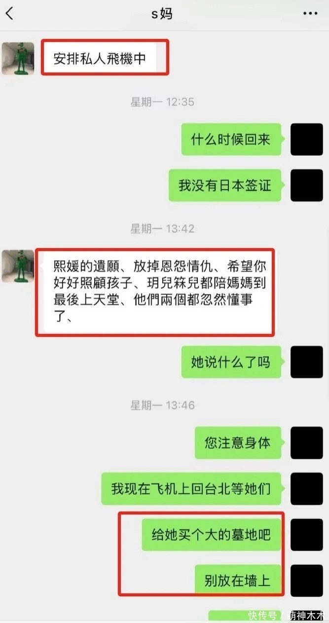 而葛斯齐也通过直播再次晒出了新的聊天截图。从图上看,是大S去世当天,汪小菲跟S妈一直保持着联系,还疑似帮忙联系怎么救治,他还询问“现在状况怎么样了,有多严重啊?我听旁边谁在哭啊?”而S妈似乎怕刺激到汪小菲,绕开话题表示不想讲出去,然后孩子心理也不能接受,但是希望他们回去的时候,汪小菲能够在台北,玥儿也非常想念爸爸,还让汪小菲回台北当孩子的靠山。